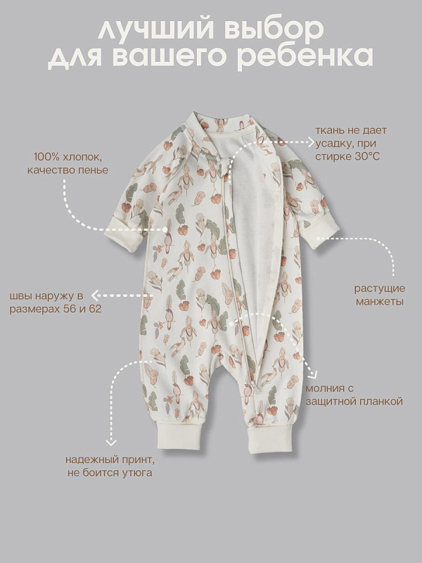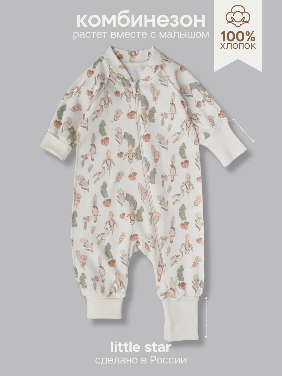 Комбинезон растущий на молнии Little Star Цветочки, птички и клубнички 13016 (ЧЗ-мз) крем 62Нет оценокХарактеристики