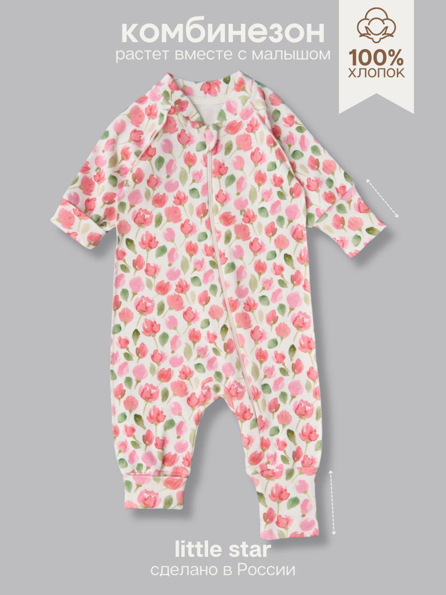 Комбинезон растущий на молнии Little Star Тюльпаны 13016 (ЧЗ-мз) крем 68