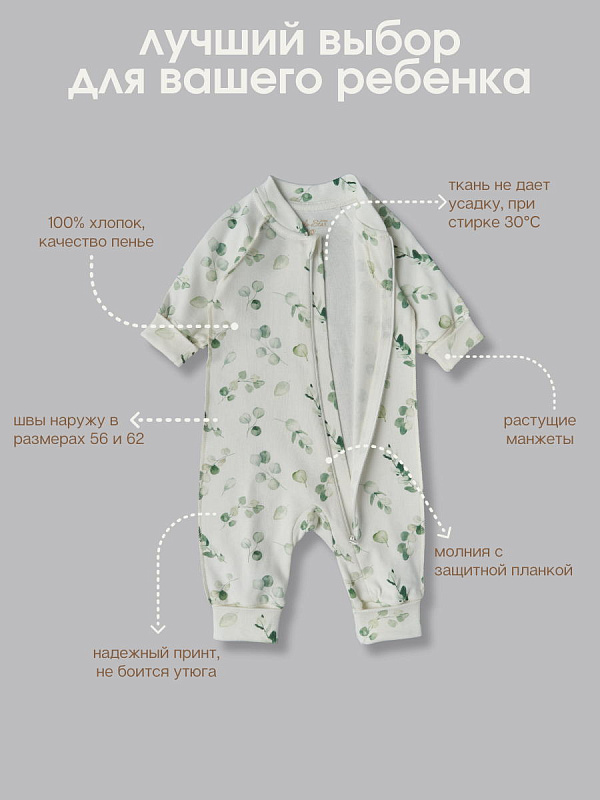 Комбинезон растущий на молнии Little Star Веточки 13016 (ЧЗ-мз) крем 74