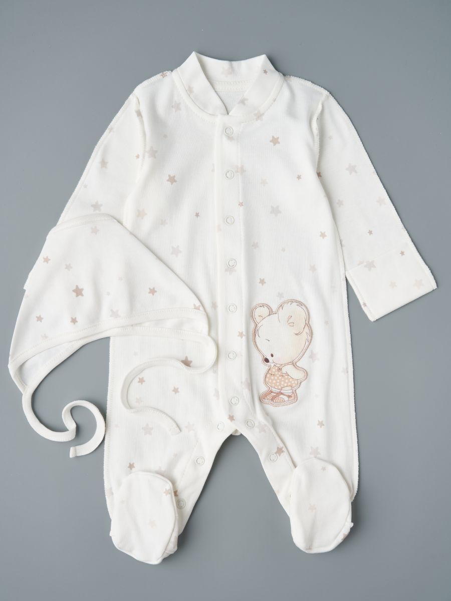 Комбинезон с чепчиком Little Star Мишка Малыш на бежевых звездах 31833 (ЧЗ-мз) крем 56