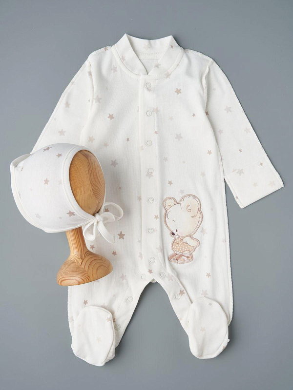 Комбинезон с чепчиком Little Star Мишка Малыш на бежевых звездах 31833 (ЧЗ-мз) крем 62Нет оценокХарактеристики