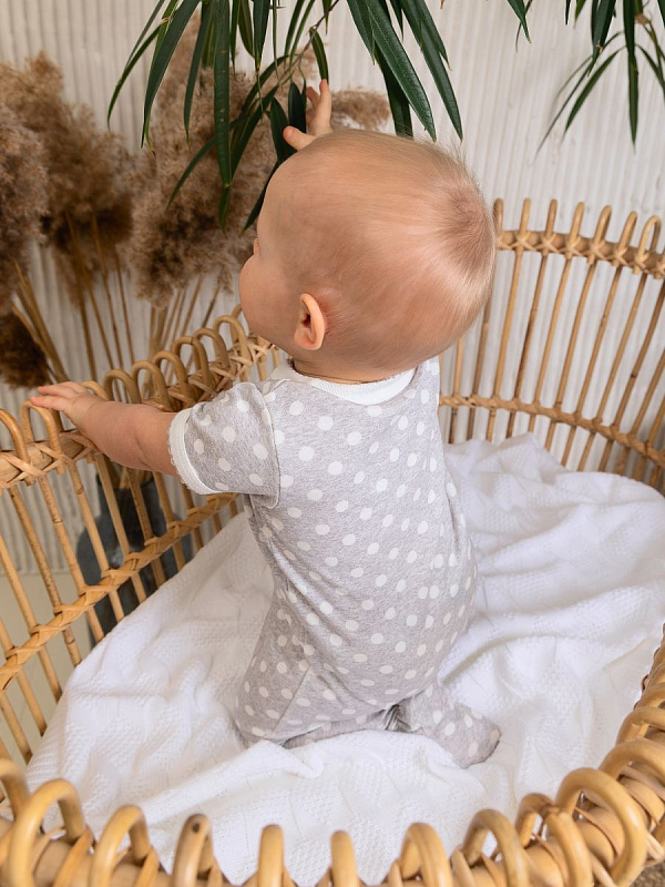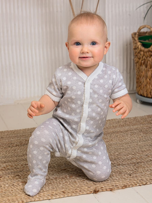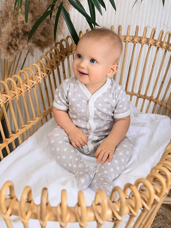 Комбинезон с коротким рукавом на кнопках Little Star горошки, серый 56