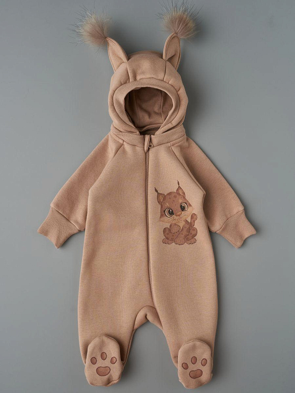 Комбинезон с отстегивающимся капюшоном футер с начесом Little Star Рысенок 823015 (ЧЗ-мз) бежевый 68