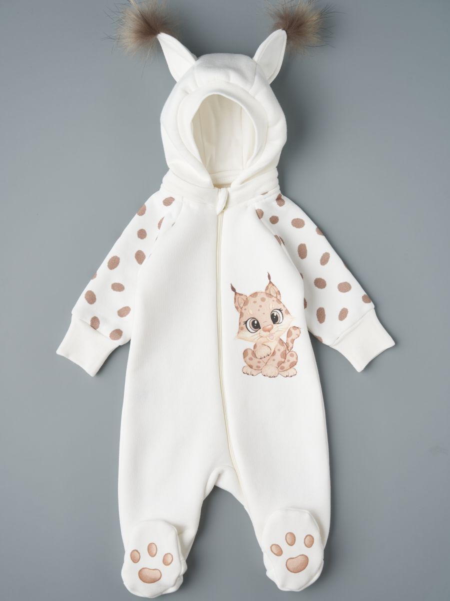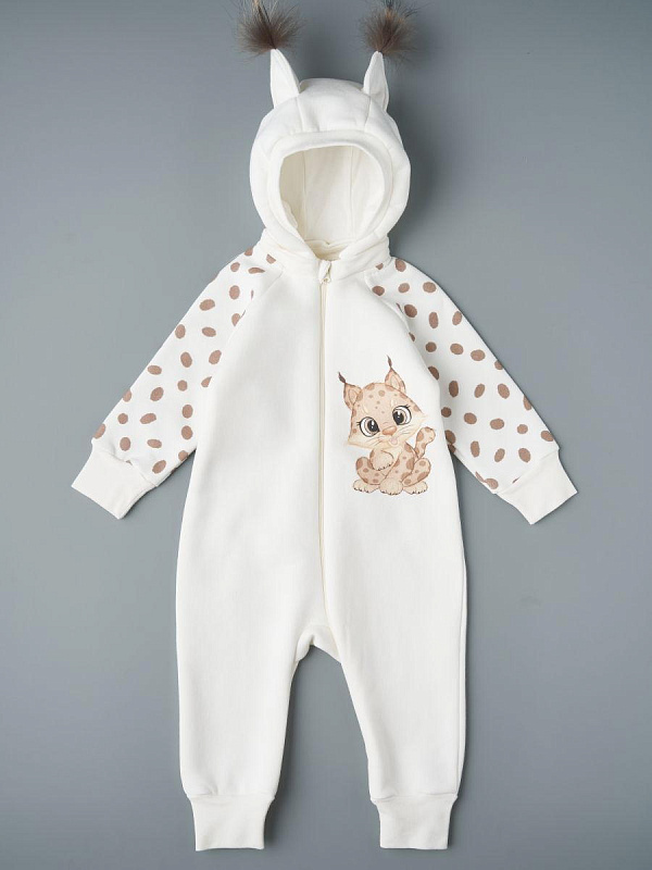 Комбинезон с отстегивающимся капюшоном футер с начесом Little Star Рысенок 823015 (ЧЗ-мз) крем 56