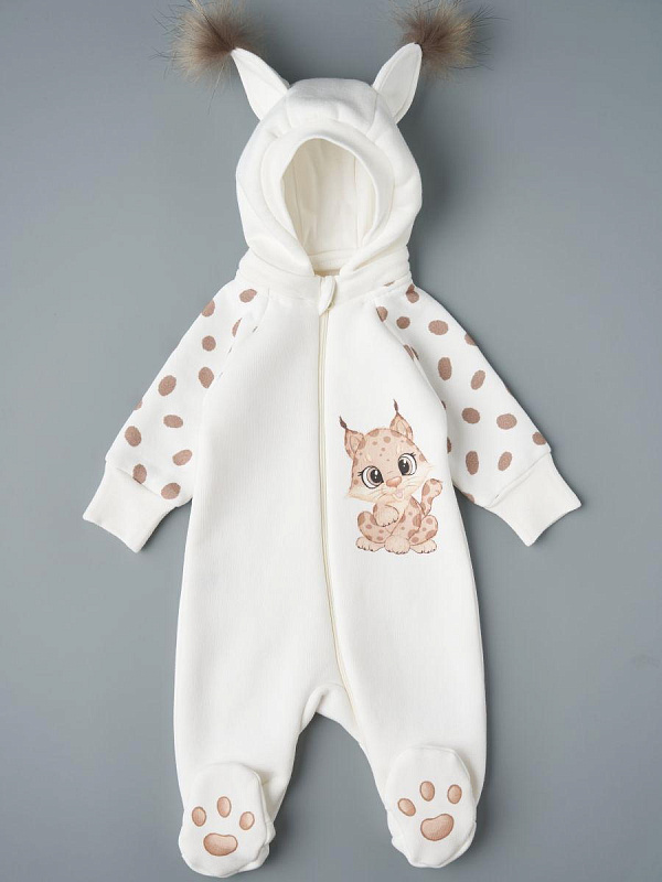 Комбинезон с отстегивающимся капюшоном футер с начесом Little Star Рысенок 823015 (ЧЗ-мз) крем 68