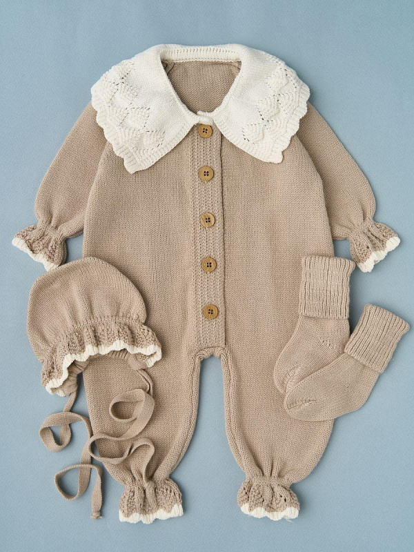 Комбинезон с воротником, чепчик, носочки Little Star Классик 807333 (ЧЗ-нк) бежевый/кремовый 56Нет оценокХарактеристики