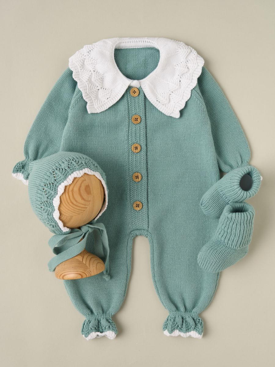 Комбинезон с воротником, чепчик, носочки Little Star Классик 807333 (ЧЗ-нк) полынь/белый 56