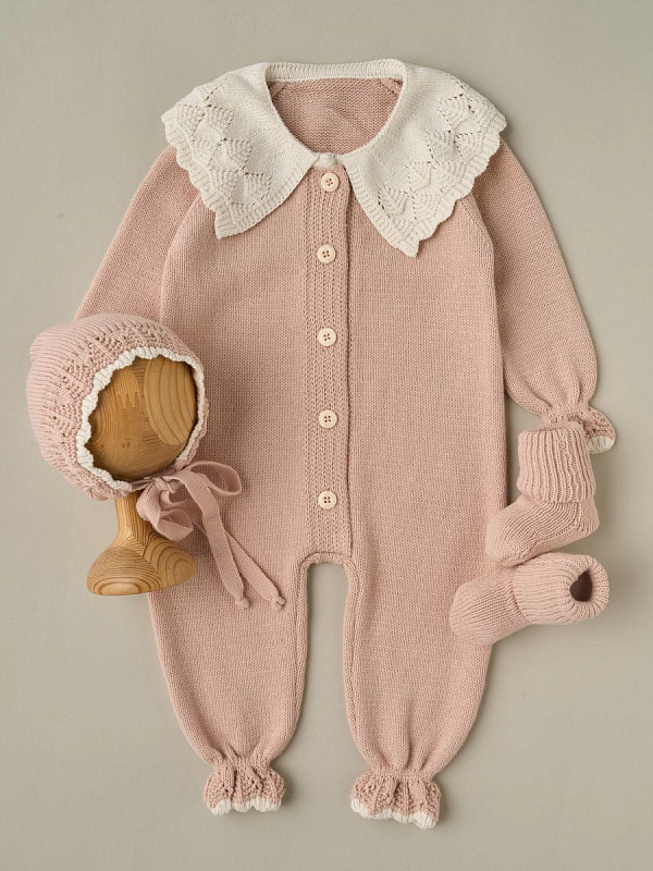 Комбинезон с воротником, чепчик, носочки Little Star Классик 807333 (ЧЗ-нк) пудровый/крем 56