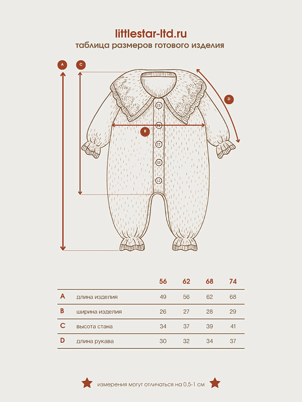 Комбинезон с воротником, чепчик, носочки Little Star Классик 807333 (ЧЗ-нк) пудровый/крем 561 оценкаХарактеристики