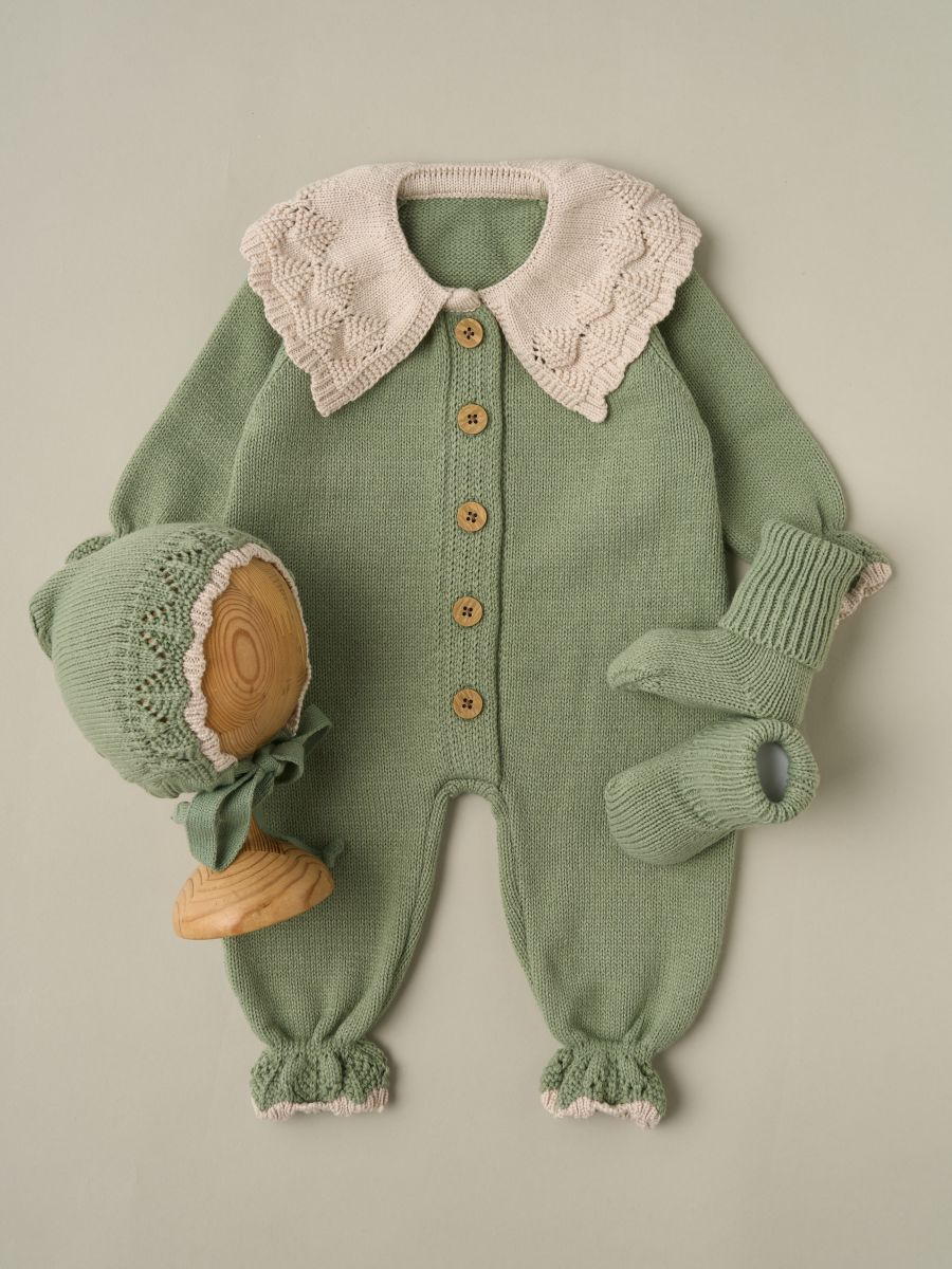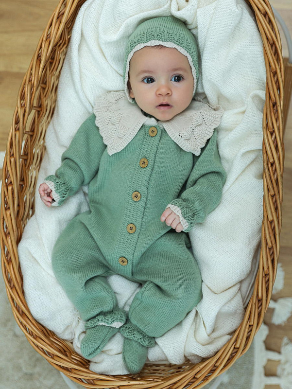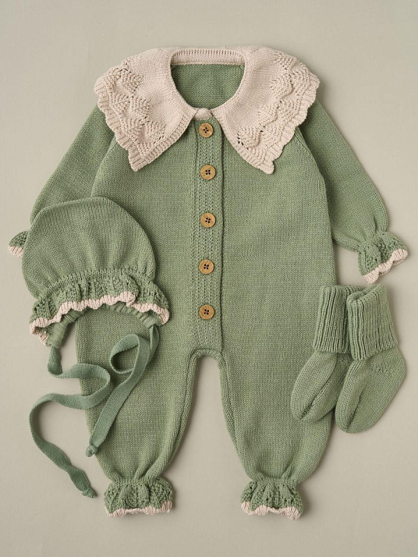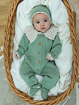 Комбинезон с воротником, чепчик, носочки Little Star Классик 807333 (ЧЗ-нк) серо-зеленый/светло-бежевый 62