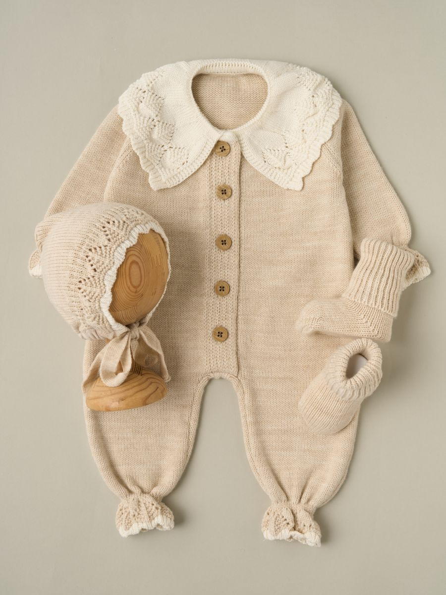 Комбинезон с воротником, чепчик, носочки Little Star Классик 807333 (ЧЗ-нк) слоновая кость/кремовый 62