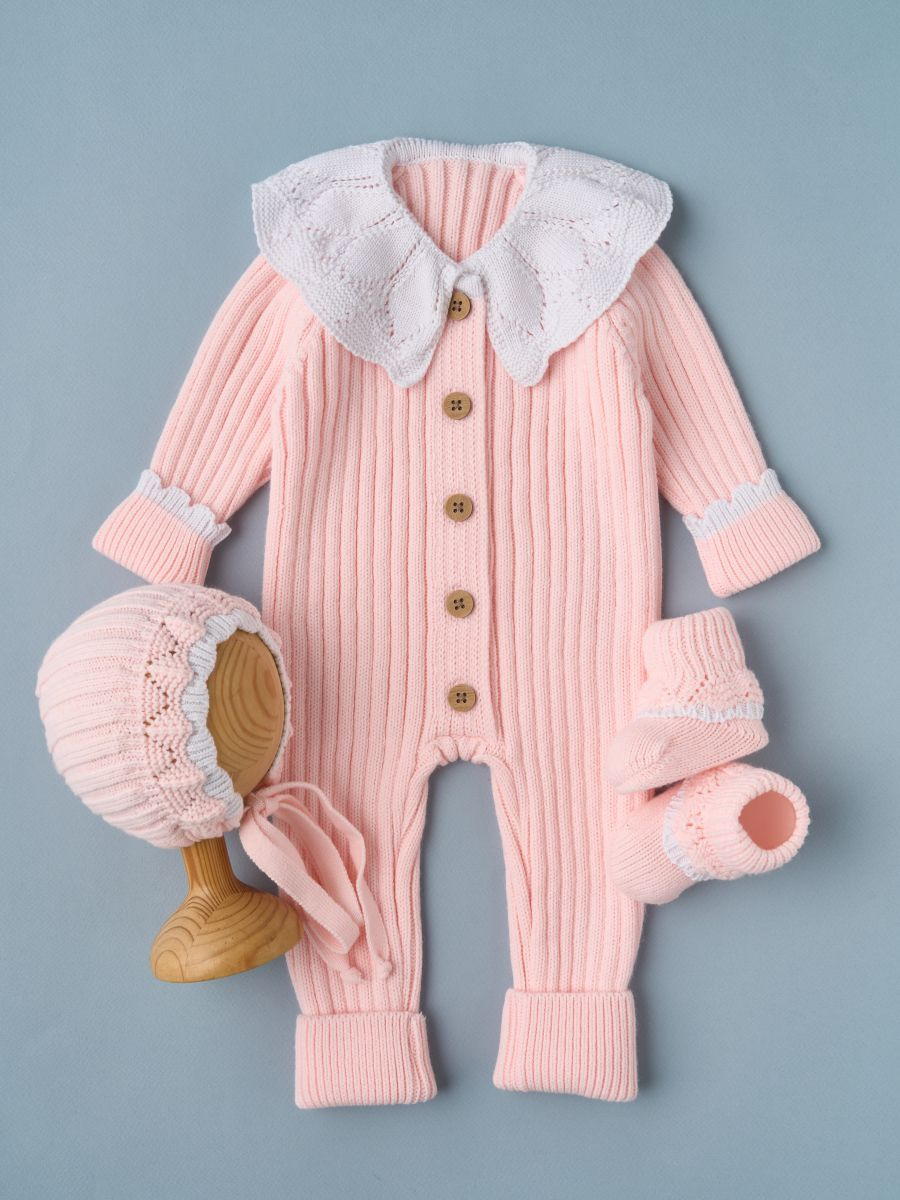Комбинезон с воротником, чепчик, носочки Little Star Лапша 830017 (ЧЗ-нк) лосось/белый 62
