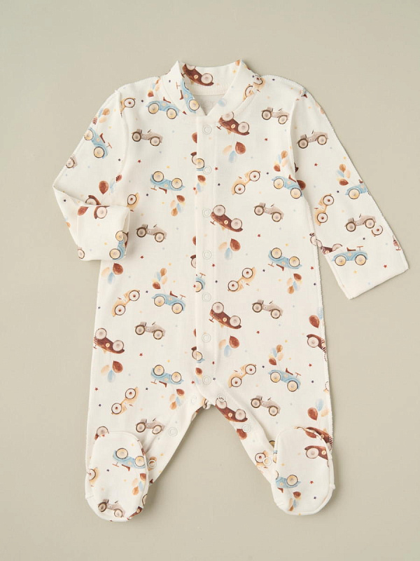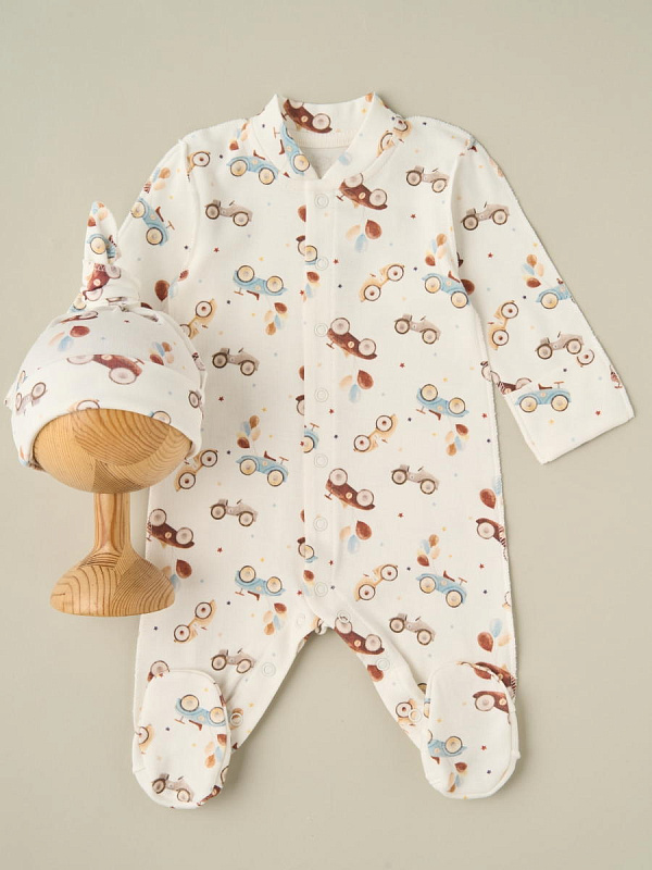 Комбинезон, шапочка-узелок Little Star Машинки 31833-2 (ЧЗ-мз) крем 56