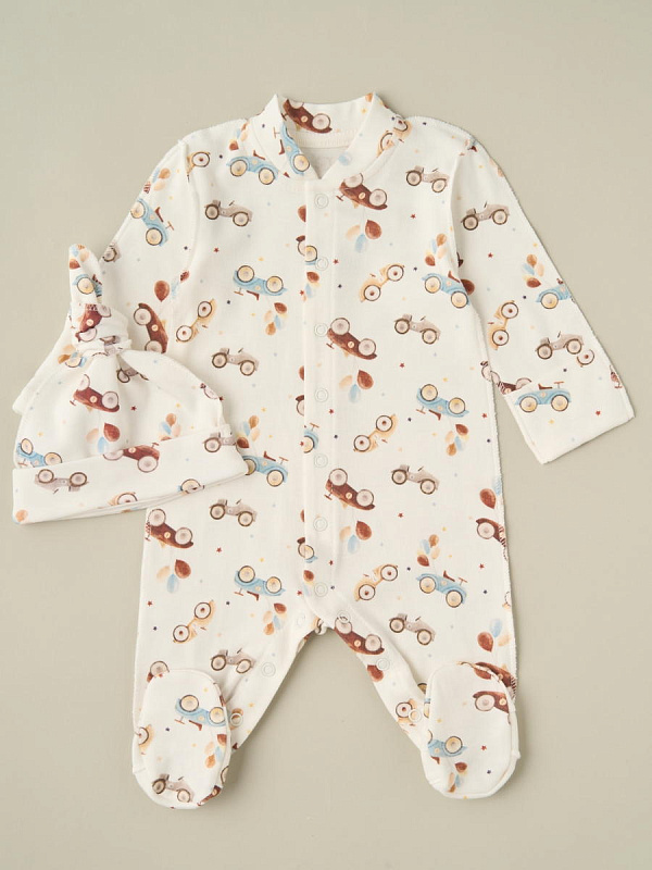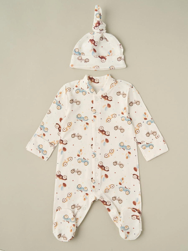 Комбинезон, шапочка-узелок Little Star Машинки 31833-2 (ЧЗ-мз) крем 62