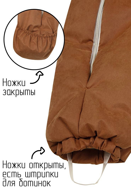 - Используйте комбинезон как самостоятельную одежду, так и в комплекте с меховым конвертом зимой