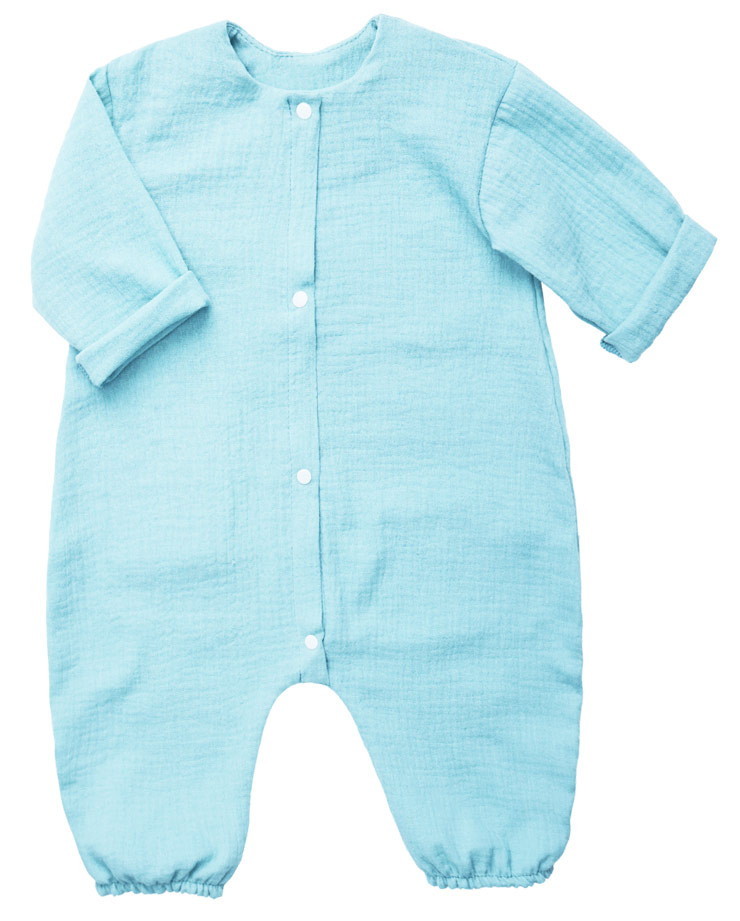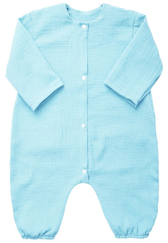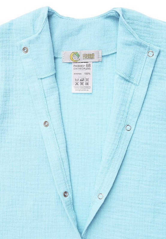 - Комбинезон создан из воздушного муслина (100% хлопок) – это мягкий и нежный материал, который хорошо пропускает воздух, позволяя коже ребенка дышать.
