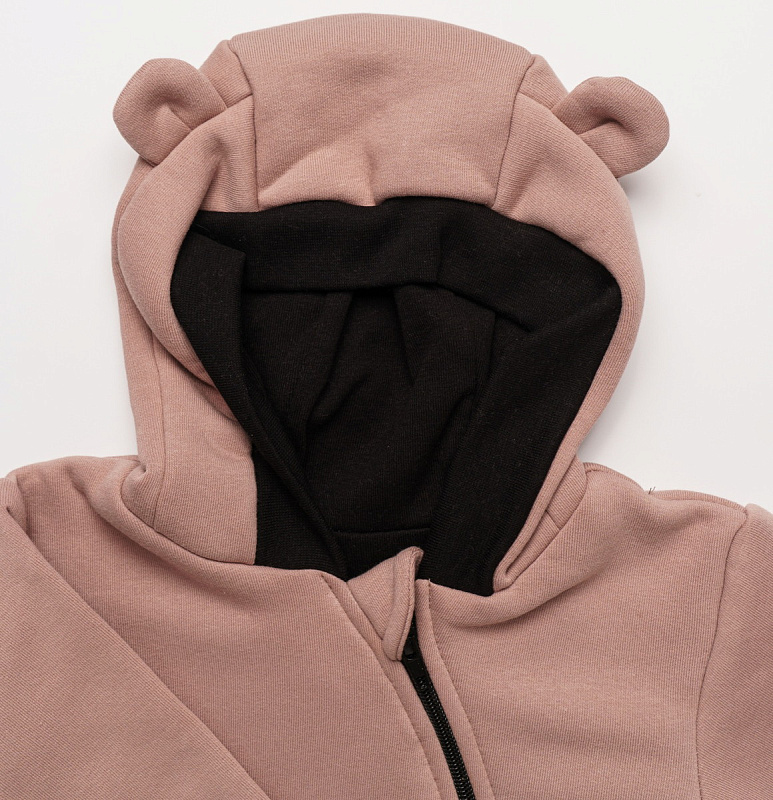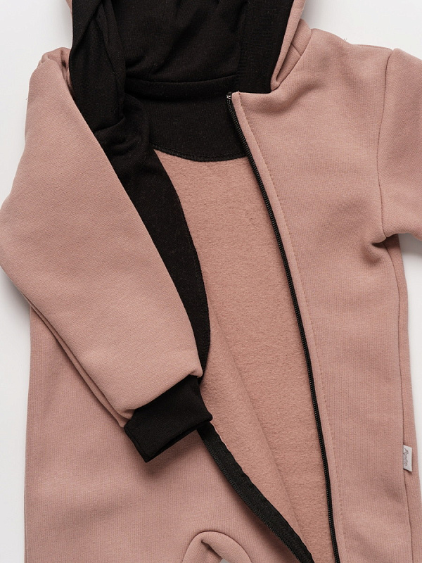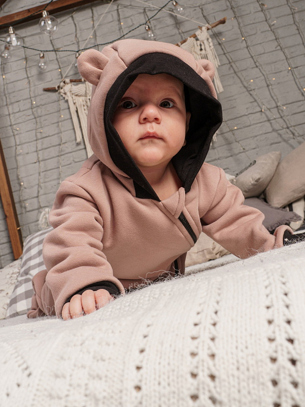 Утеплённый комбинезон с ушками выполнен из футера с начесом. Комбинезон подходит для использования всю весну, осень и зиму. При первом похолодании его можно носить как верхнюю одежду, а в морозную погоду - надевать под зимние теплые комбинезоны. В такой одежде малышу будет тепло и уютно.
