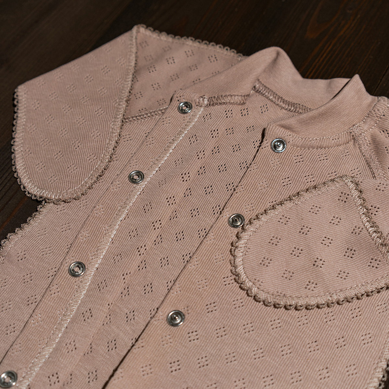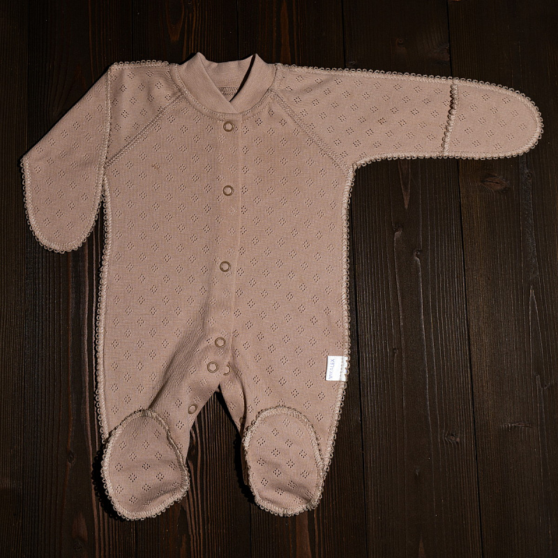 Комбинезон Vikalex Ажур капучино — идеальный выбор для вашего малыша! Он выполнен из мягкого и приятного к телу 100 % хлопка, который обеспечивает комфорт и удобство. Благодаря удобной застёжке на кнопки вдоль всей модели от горловины до ножек, вы сможете легко переодеть малыша. Этот комбинезон идеально подойдёт как для повседневной носки, так и в качестве пижамы.