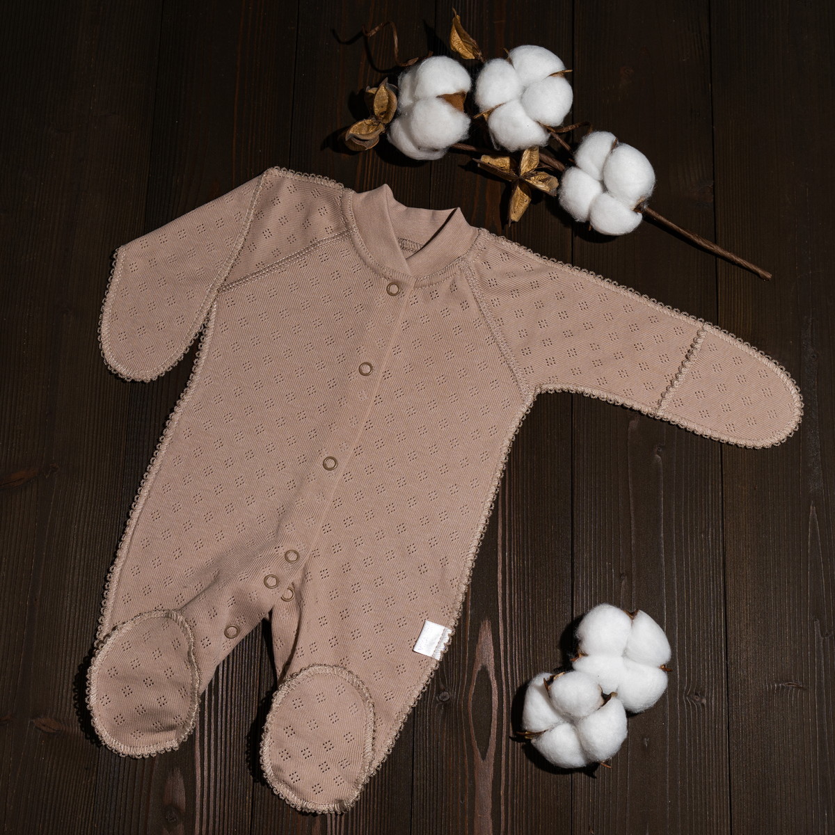Комбинезон Vikalex Ажур капучино — идеальный выбор для вашего малыша! Он выполнен из мягкого и приятного к телу 100 % хлопка, который обеспечивает комфорт и удобство. Благодаря удобной застёжке на кнопки вдоль всей модели от горловины до ножек, вы сможете легко переодеть малыша. Этот комбинезон идеально подойдёт как для повседневной носки, так и в качестве пижамы.