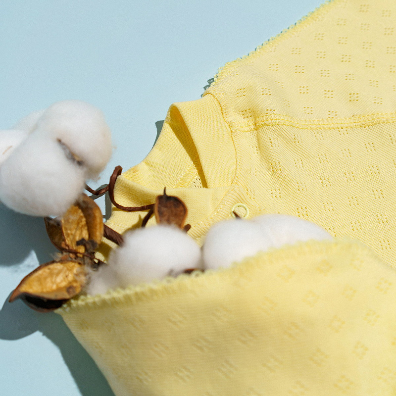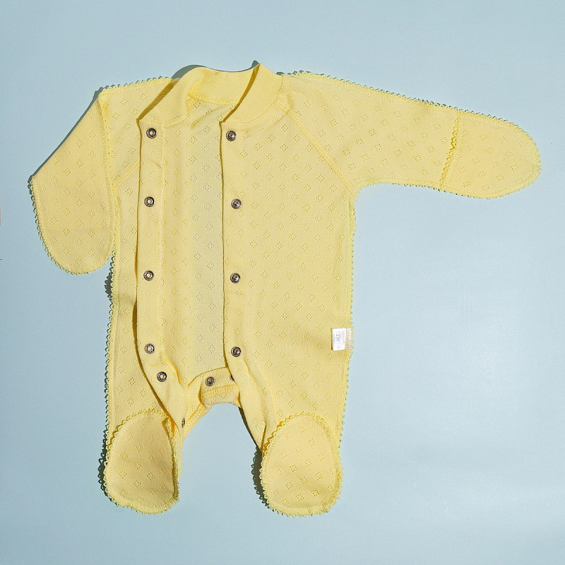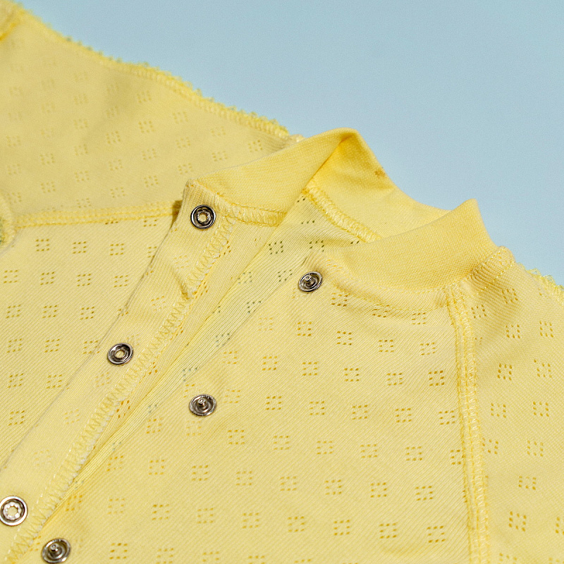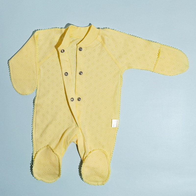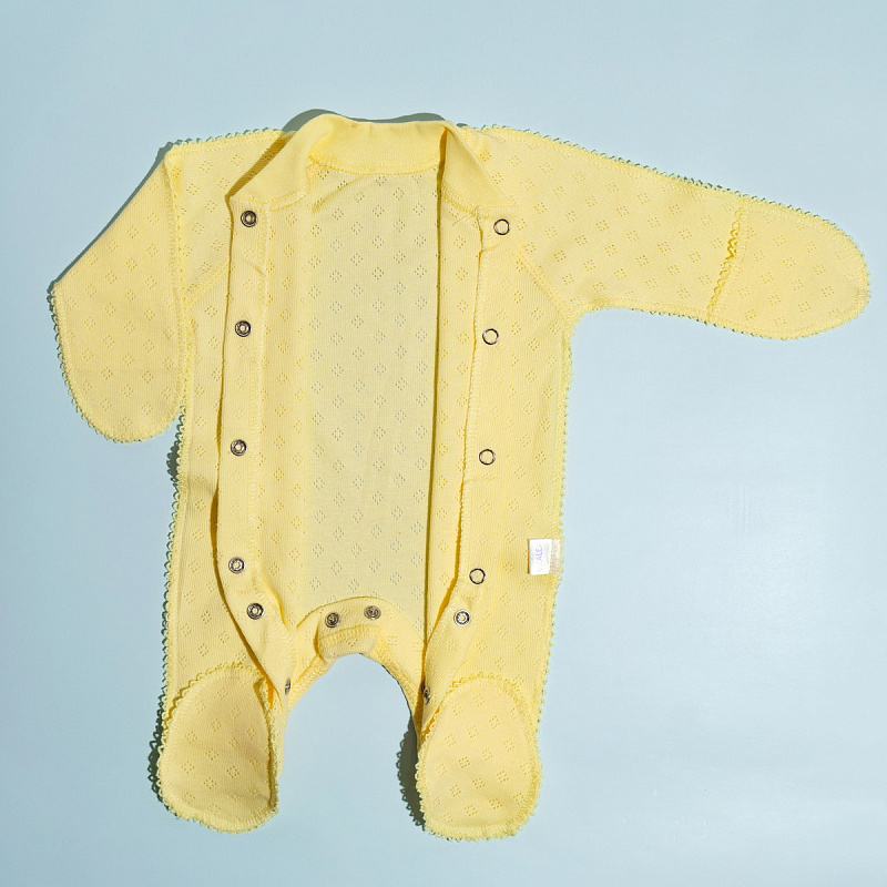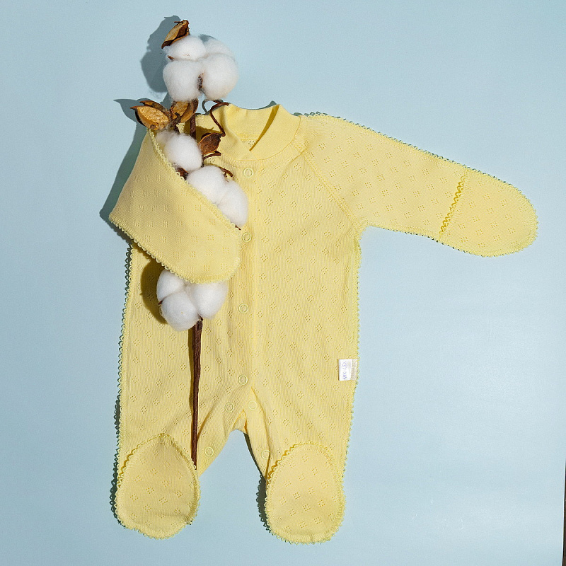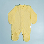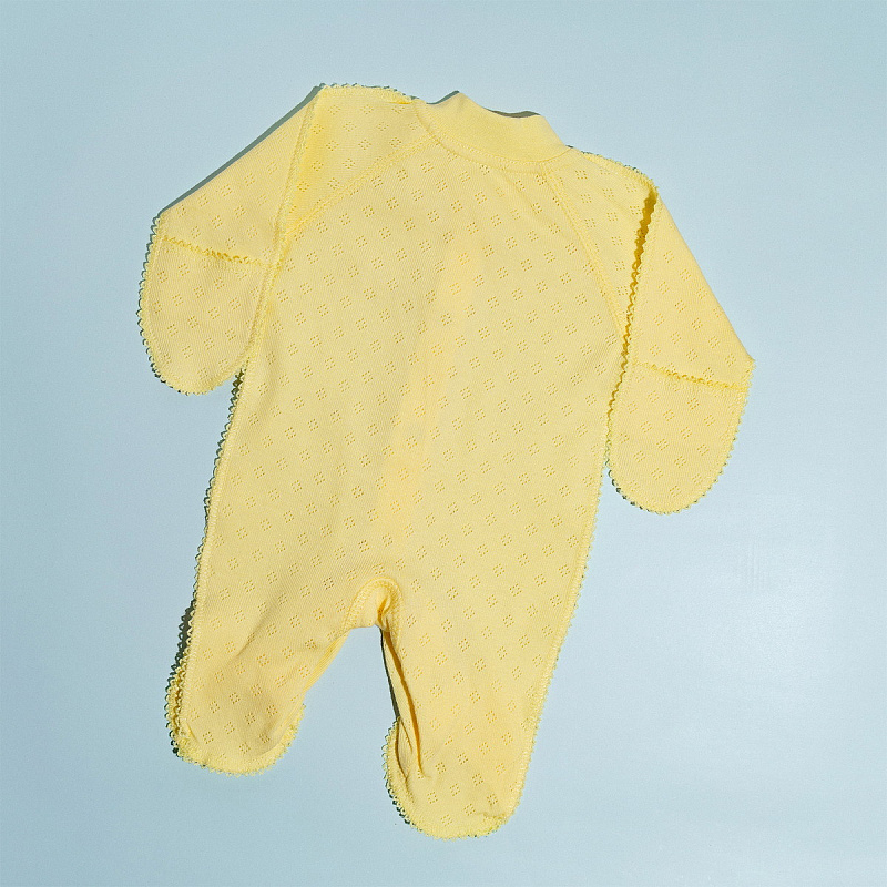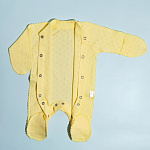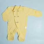 Комбинезончик для малыша изготовлен из натуральной ткани, которая хорошо пропускает воздух, позволяя телу дышать. Швы сделаны снаружи и не будут доставлять ребёнку неудобств. Можно носить дома или надевать как первый слой на прогулку. Мягкая приятная к телу ткань проста в уходе.