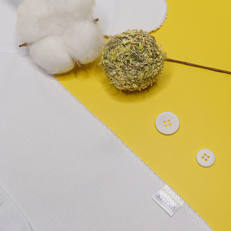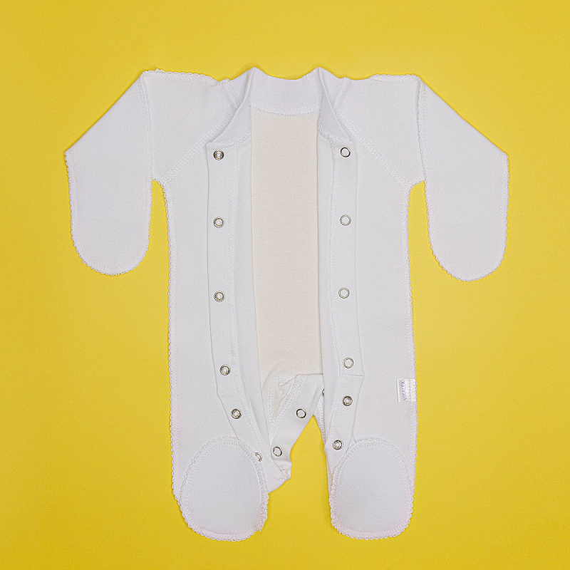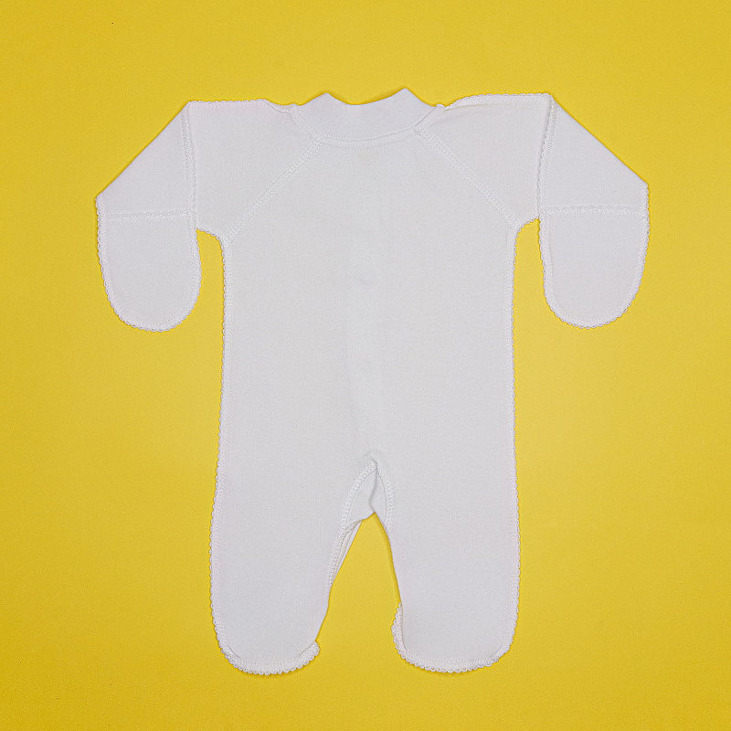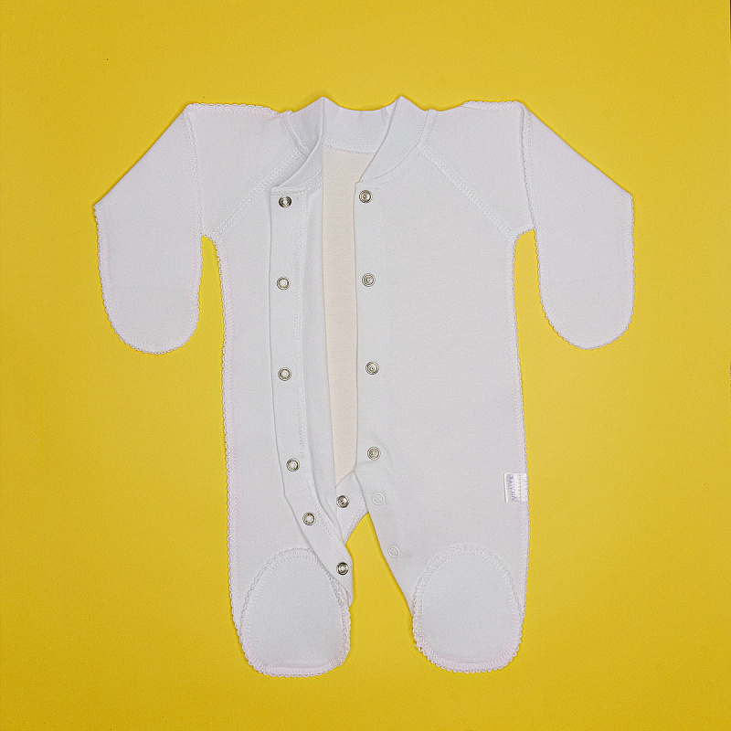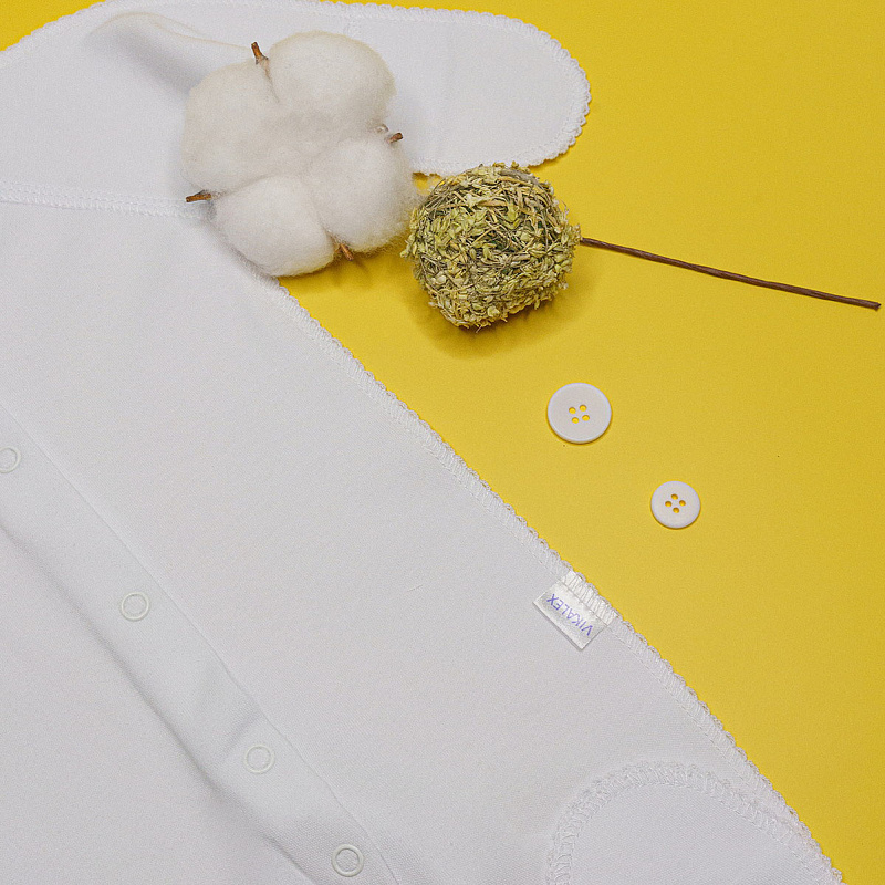 Комбинезончик для малыша изготовлен из натуральной ткани, которая хорошо пропускает воздух, позволяя телу дышать. Швы сделаны снаружи и не будут доставлять ребёнку неудобств. Можно носить дома или надевать как первый слой на прогулку. Мягкая приятная к телу ткань проста в уходе.