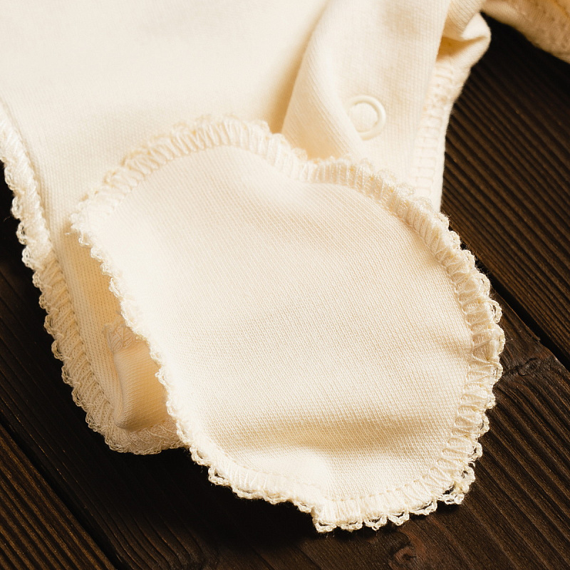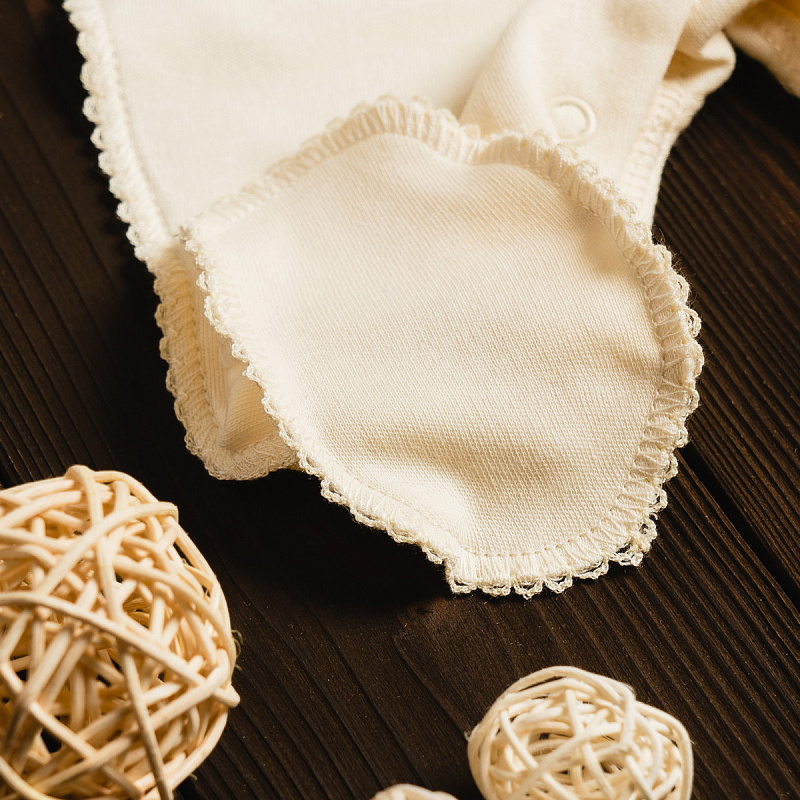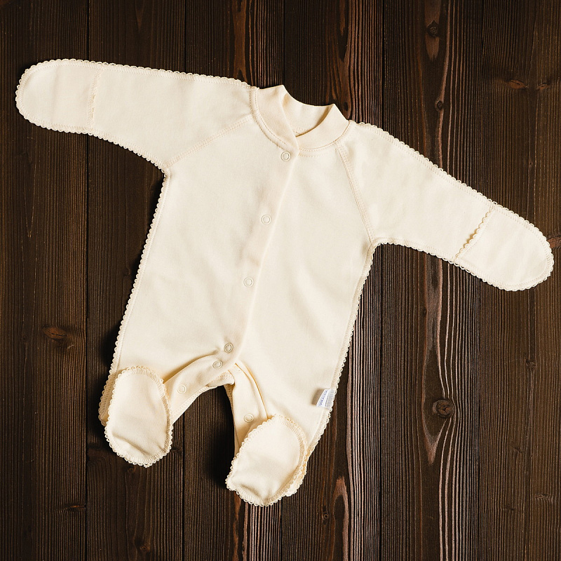 Комбинезончик для малыша изготовлен из натуральной ткани, которая хорошо пропускает воздух, позволяя телу дышать. Швы сделаны снаружи и не будут доставлять ребёнку неудобств. Можно носить дома или надевать как первый слой на прогулку. Мягкая приятная к телу ткань проста в уходе.