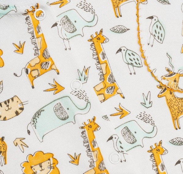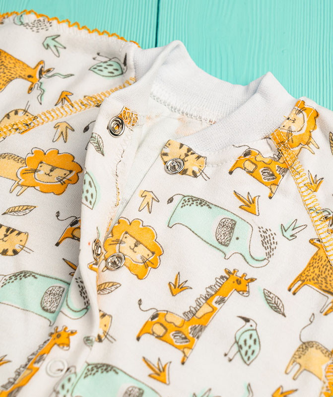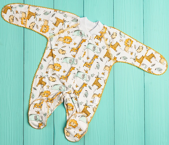 Удобный комбинезон для малыша изготовлен из гипоалергенной трикотажной ткани, мягкой и приятной к телу. Швы выполнены снаружи, что не будет доставлять ребёнку неудобств. Легко надеть на ребёнка благодаря кнопкам-застёжкам по всей длине. Рукава с отворотами-царапками.