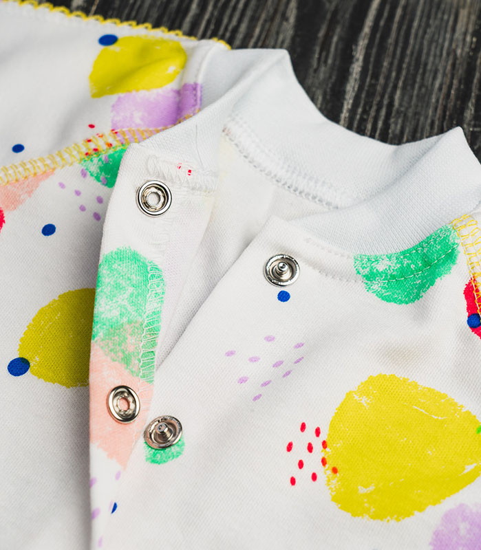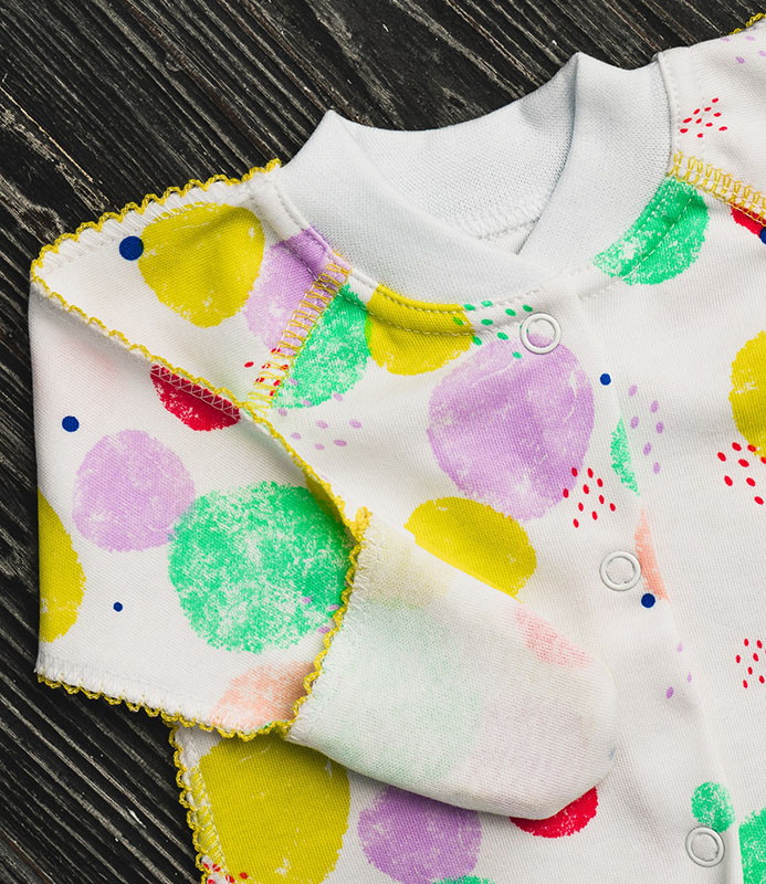 Комбинезон для малыша изготовлен из гипоалергенной трикотажной ткани, мягкой и приятной к телу. Швы выполнены снаружи, что не будет доставлять ребёнку неудобств. Легко надеть на ребёнка благодаря кнопкам-застёжкам по всей длине. Рукава с отворотами-царапками.