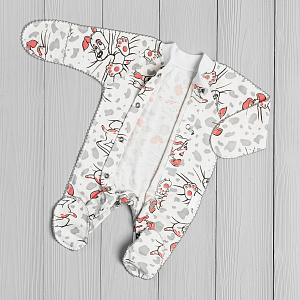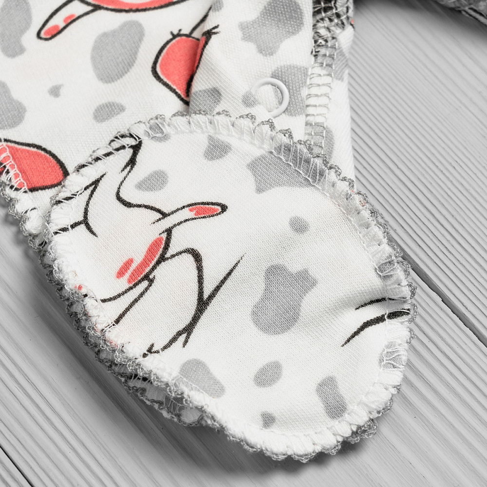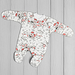 Удобный комбинезон для малыша изготовлен из гипоалергенной трикотажной ткани, мягкой и приятной к телу. Швы выполнены снаружи, что не будет доставлять ребёнку неудобств. Легко надеть на ребёнка благодаря кнопкам-застёжкам по всей длине. Рукава с отворотами-царапками.