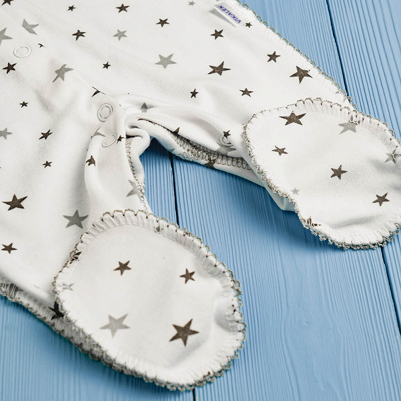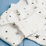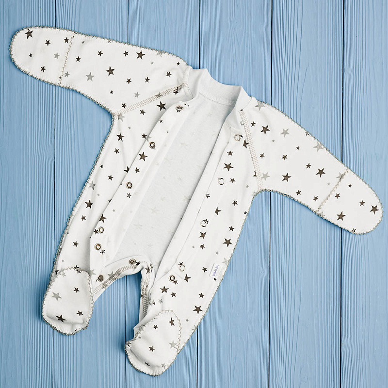 Стильный и удобный комбинезончик для малыша изготовлен из натуральной ткани, которая хорошо пропускает воздух, позволяя телу дышать. Швы сделаны снаружи и не будут доставлять ребёнку неудобств. Можно носить дома или надевать как первый слой на прогулку.