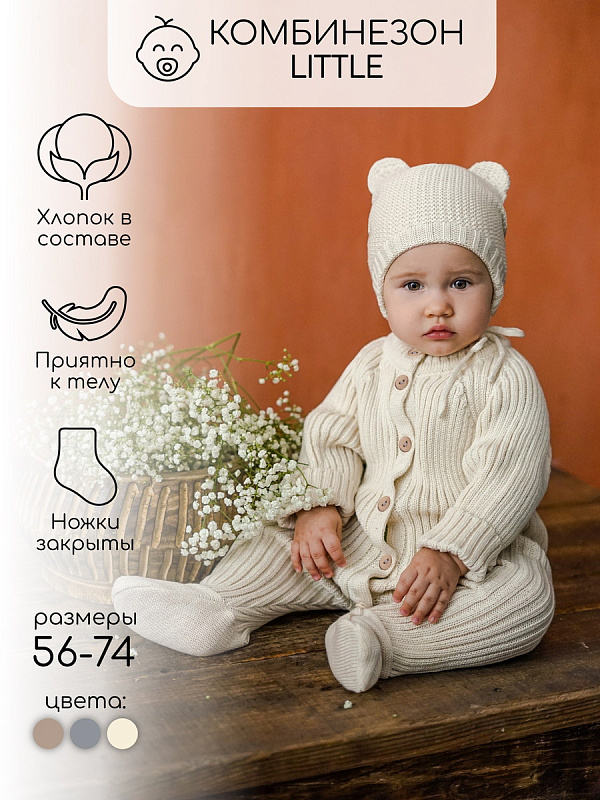 Комбинезон вязаный AmaroBaby Pure Love Little демисезонный молочный 62