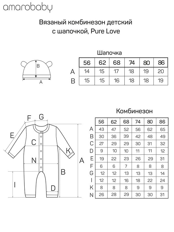 Комбинезон вязаный AmaroBaby Pure Love с шапочкой бежевый 62
