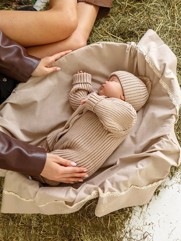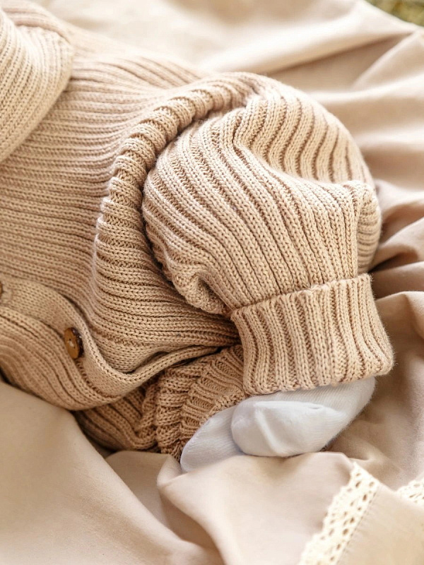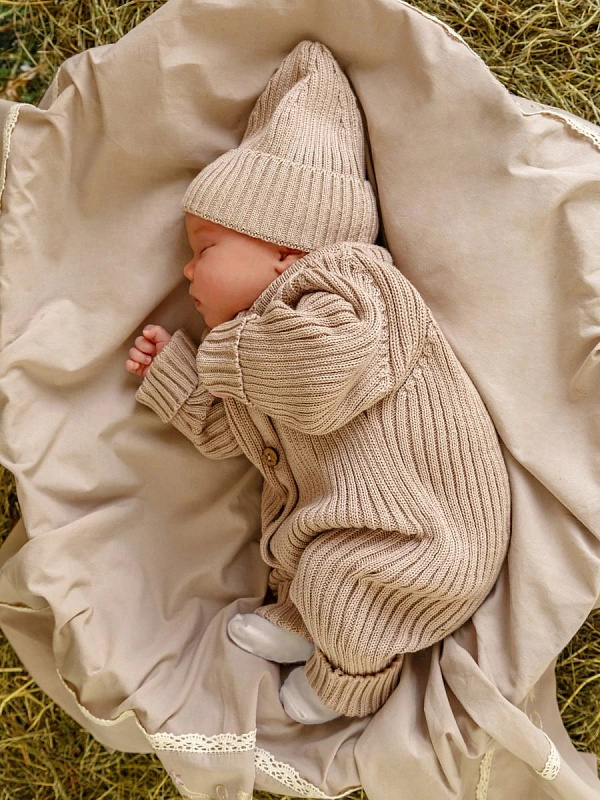 Комбинезон вязаный AmaroBaby Pure Love Tot демисезонный с шапочкой ЧЗ бежевый 80