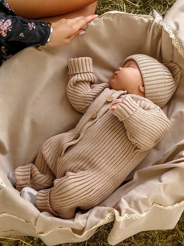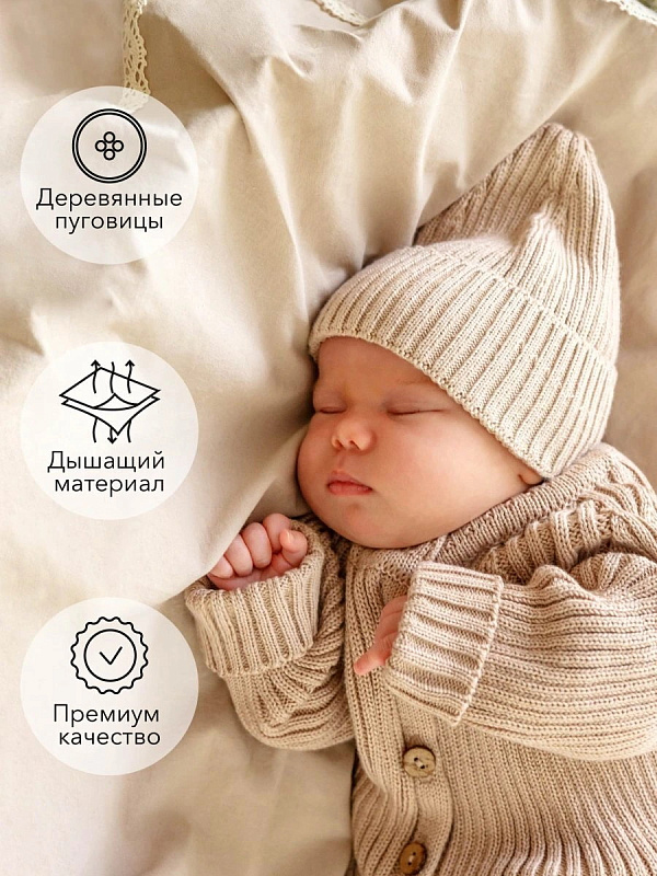 Комбинезон вязаный AmaroBaby Pure Love Tot демисезонный с шапочкой ЧЗ бежевый 86