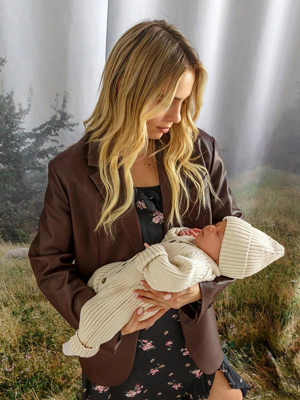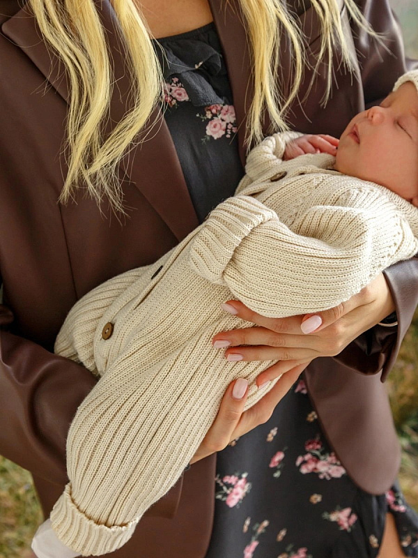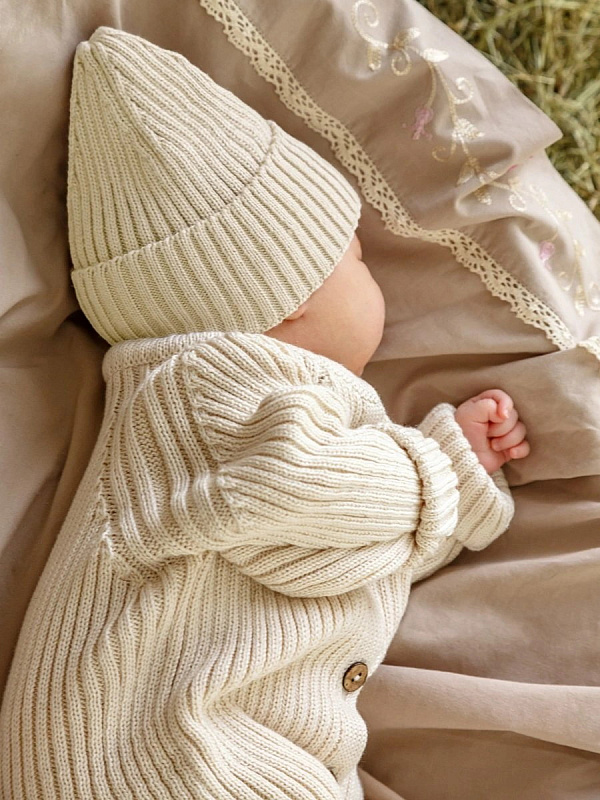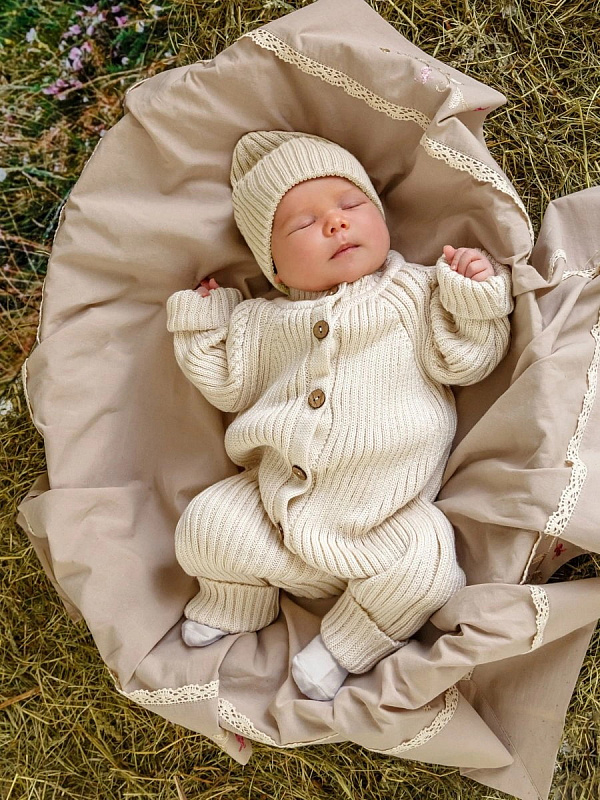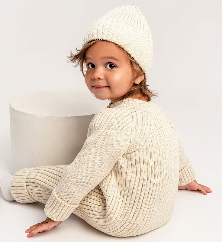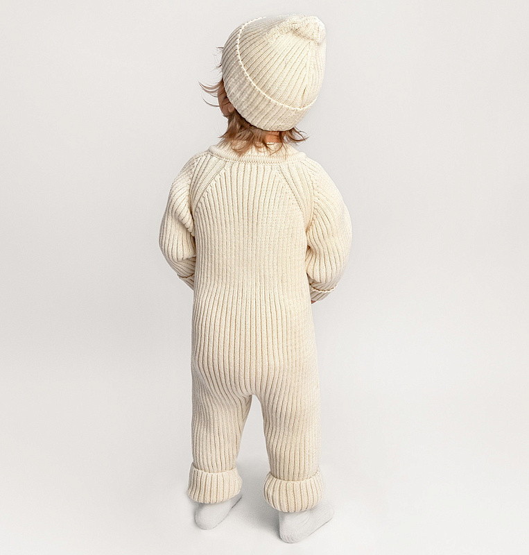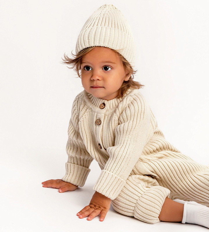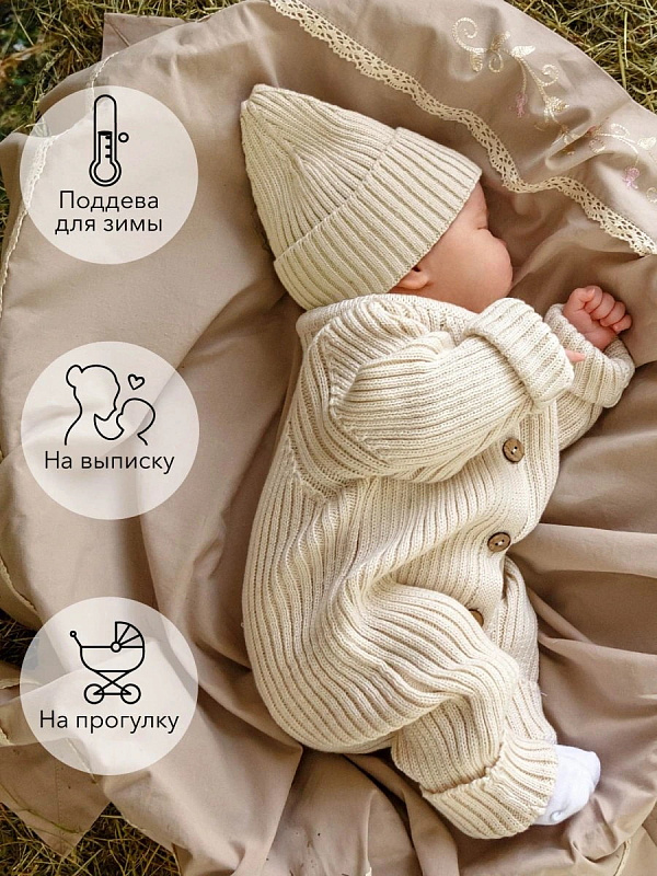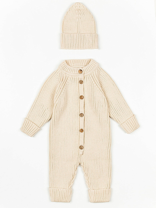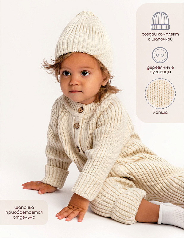 Комбинезон вязаный AmaroBaby Pure Love Tot демисезонный с шапочкой ЧЗ молочный 80