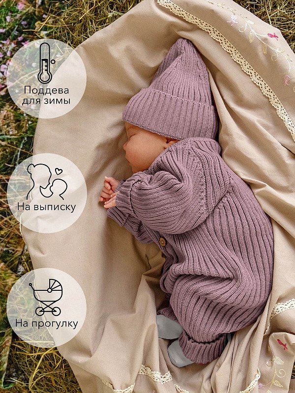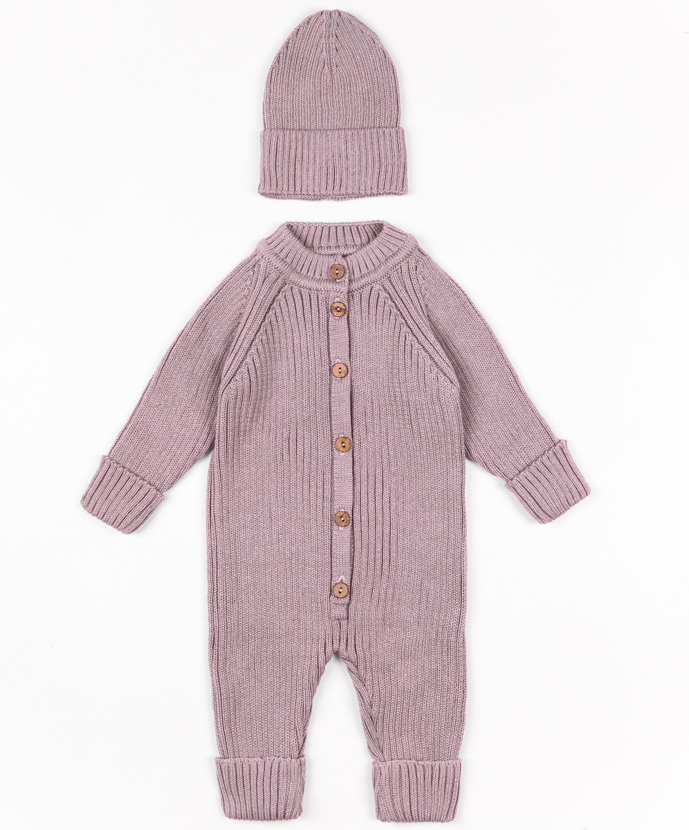 Комбинезон вязаный AmaroBaby Pure Love Tot демисезонный с шапочкой ЧЗ пудровый 86