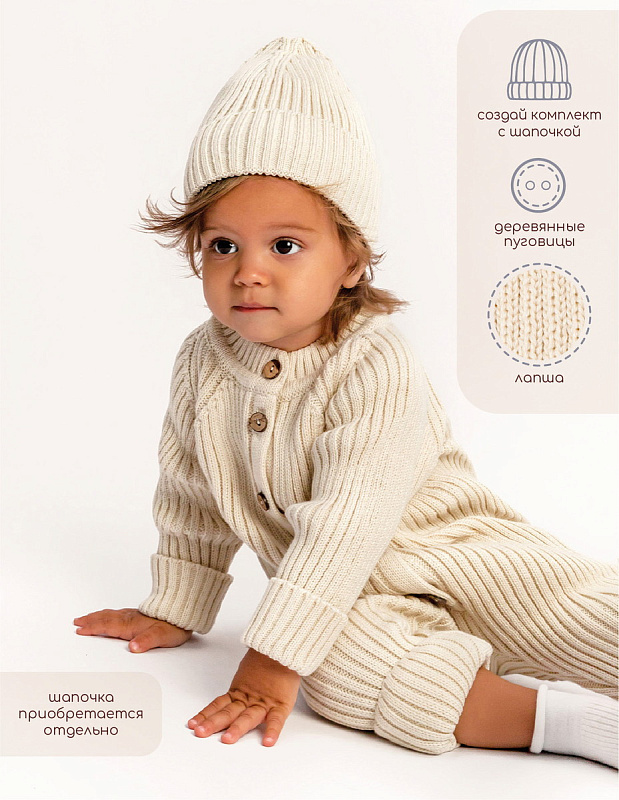 Комбинезон вязаный AmaroBaby Pure Love Tot демисезонный с шапочкой молочный 56