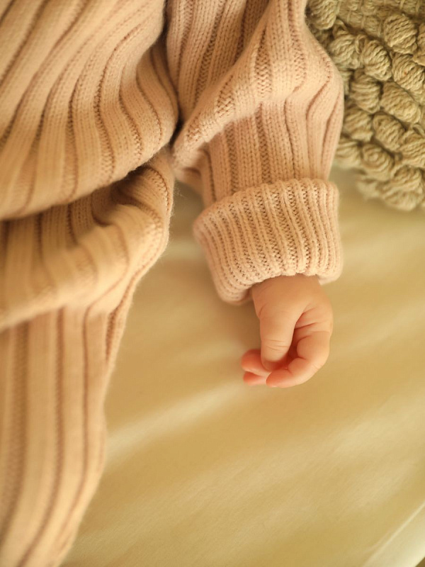 Детский нательный комбинезон для девочек и мальчиков лапша (в рубчик) из смесовой пряжи с хлопком 20%, шерстью 30% и ПАН 50%.