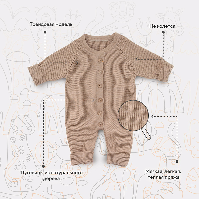 уютный вязаный комбинезон подойдет как для комфортных прогулок, так и для запоминающихся фотосессий