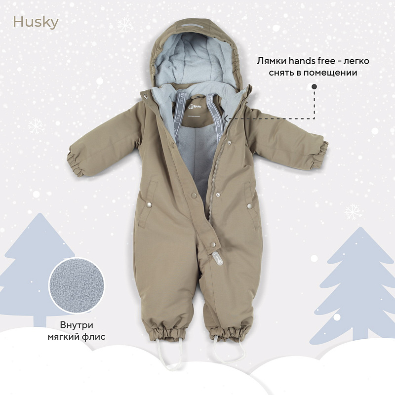 Зимний детский комбинезон RANT HUSKY NEW подарит малышу особенную радость от зимних прогулок. Модель покорит вас: лямками hands free, трендовыми лаконичными расцветками, комфортным лекалом, мембранной влагонепроницаемой тканью, внушительным слоем современного утеплителя, тщательно продуманными деталями кроя.