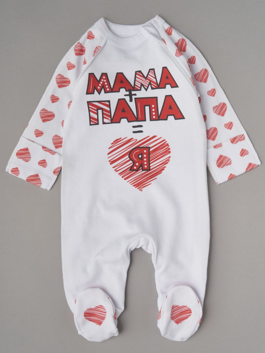 Комбинезон-асим Little Star на молнии 86920 мама+папа=я, белый 74