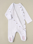 Комбинезон из нежного трикотажа, на кнопках с принтом. Удобная модель, позволит легко и быстро переодевать малыша. Кнопки расположены на боковой части (с левой стороны), сверху донизу. Также, для удобства смены подгузника, мы предусмотрели кнопочки и между ножек.
