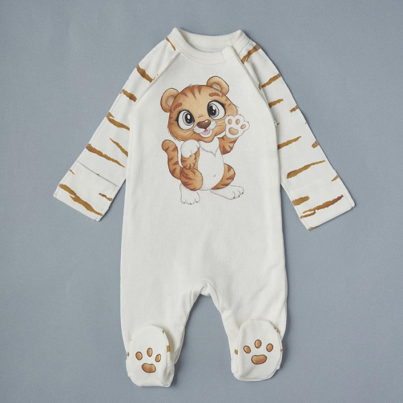 Комбинезон-асим на кнопках Little Star Тигренок 30-8692 (ЧЗ-мз) крем 74