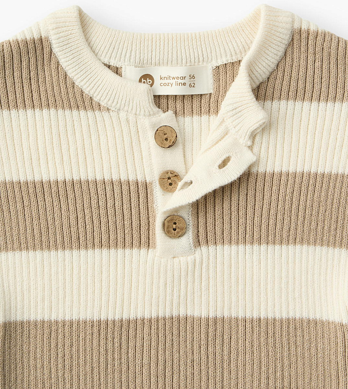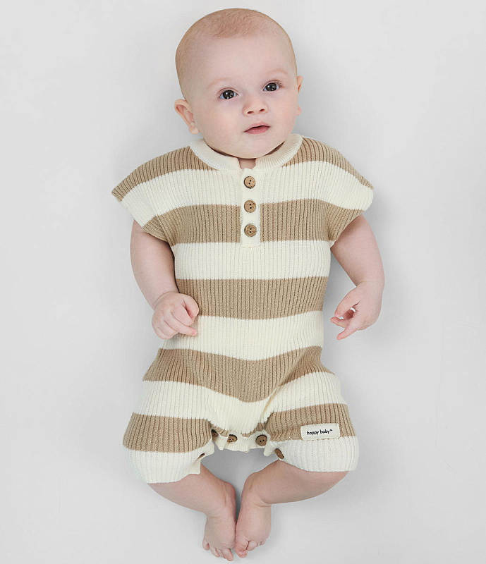 Комфортный песочник от известного бренда Happy Baby — это практичная и стильная одежда для новорожденных, которая станет незаменимой в первые месяцы жизни вашего малыша. Модель выполнена в универсальном молочно-оливковом цвете с элегантной полоской, что делает её подходящей как для мальчиков, так и для девочек.