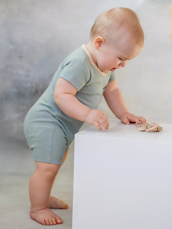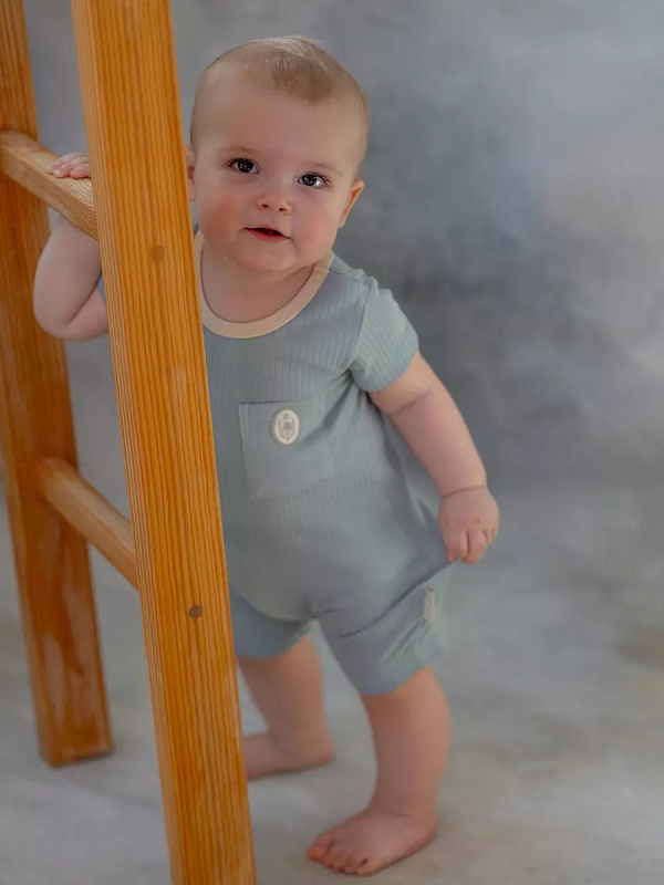 Комбинезон-песочник подходит для летних прогулок, а также для повседневной носки. Модель застегивается на кнопки снизу, что позволит быстро переодеть подгузник. Материал изделия позволяет коже малыша дышать.