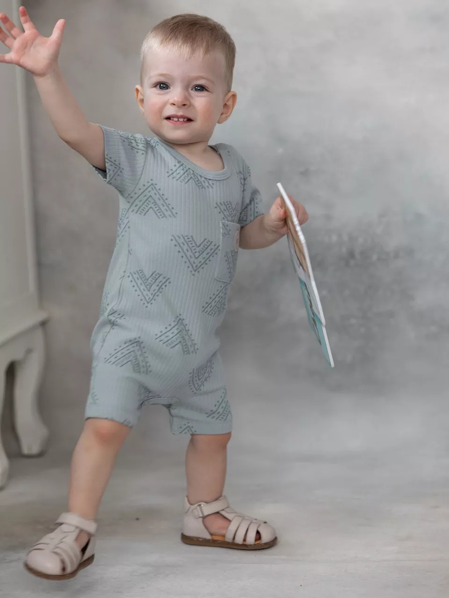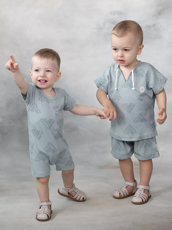 Комбинезон-песочник подходит для летних прогулок, а также для повседневной носки. Модель застегивается на кнопки снизу, что позволит быстро переодеть подгузник. Материал изделия позволяет коже малыша дышать.