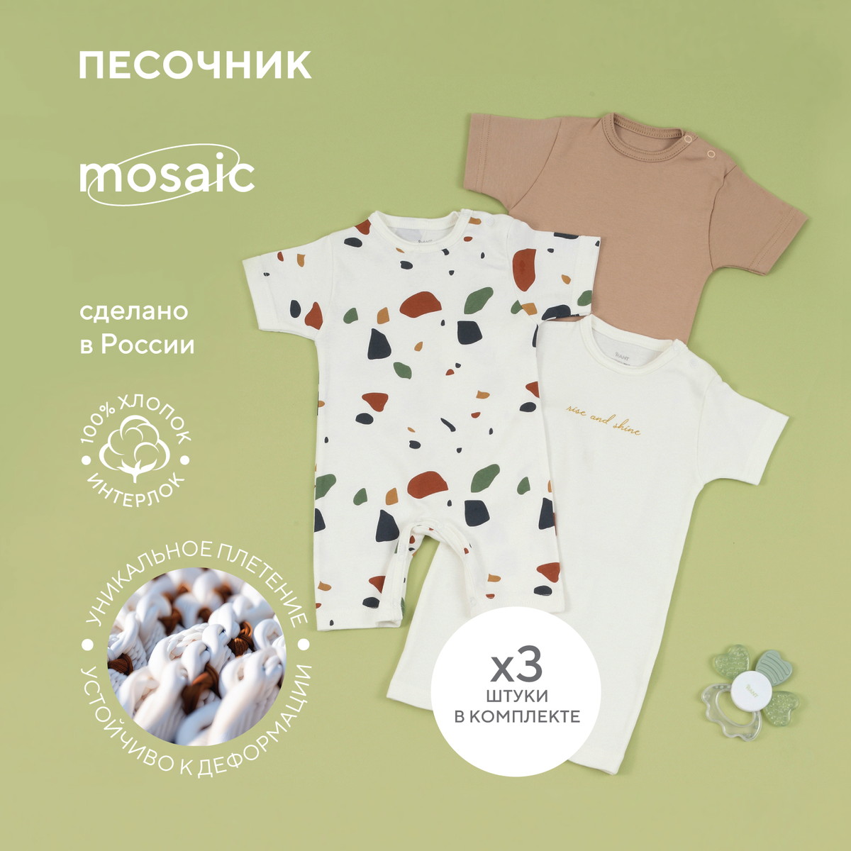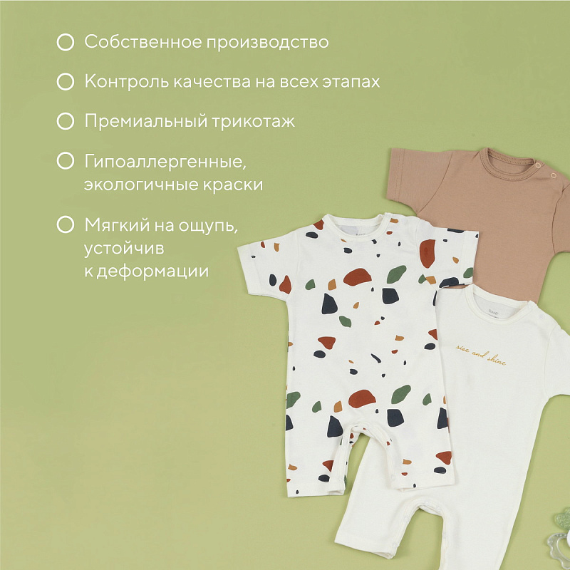 Набор Rant Mosaic с особой деликатностью создан для новорожденных и малышей постарше. Базовые расцветки, устойчивые принты, лаконичное исполнение, премиальные ткани - визитная карточка нашей одежды.