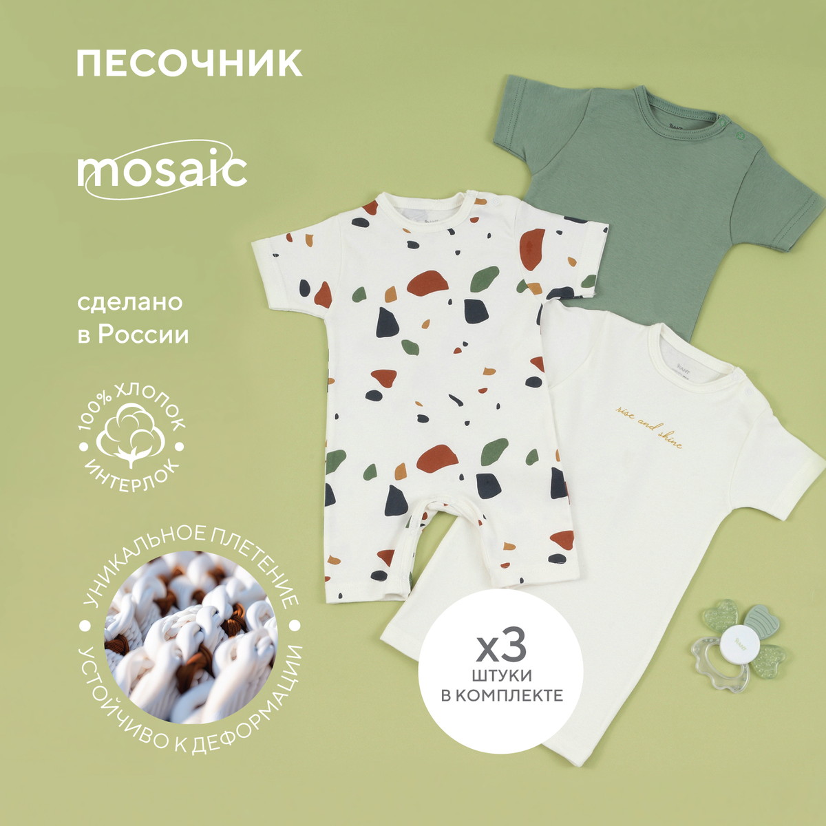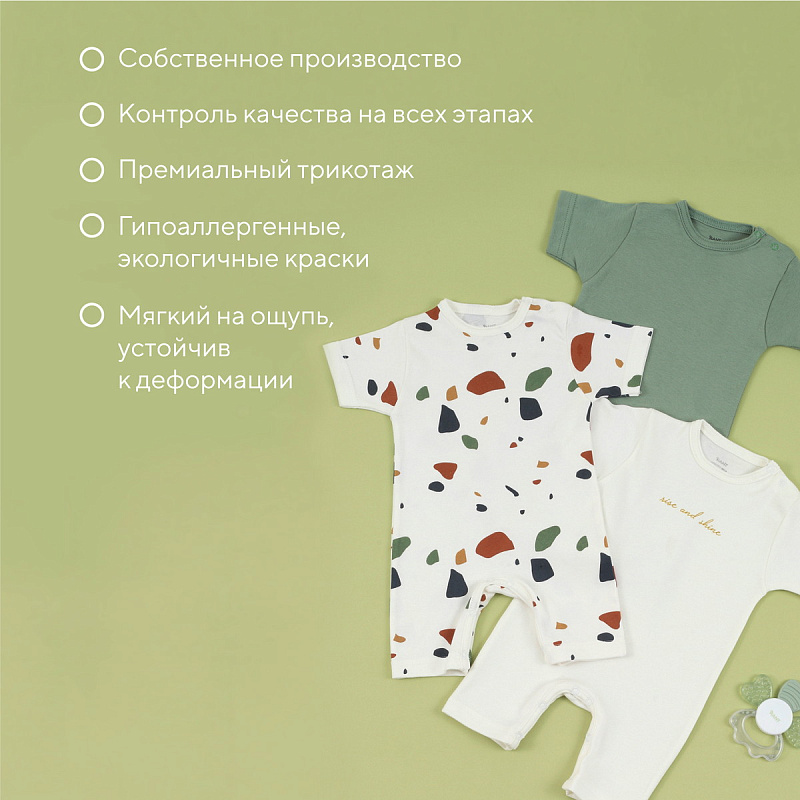 Набор Rant Mosaic с особой деликатностью создан для новорожденных и малышей постарше. Базовые расцветки, устойчивые принты, лаконичное исполнение, премиальные ткани - визитная карточка нашей одежды.