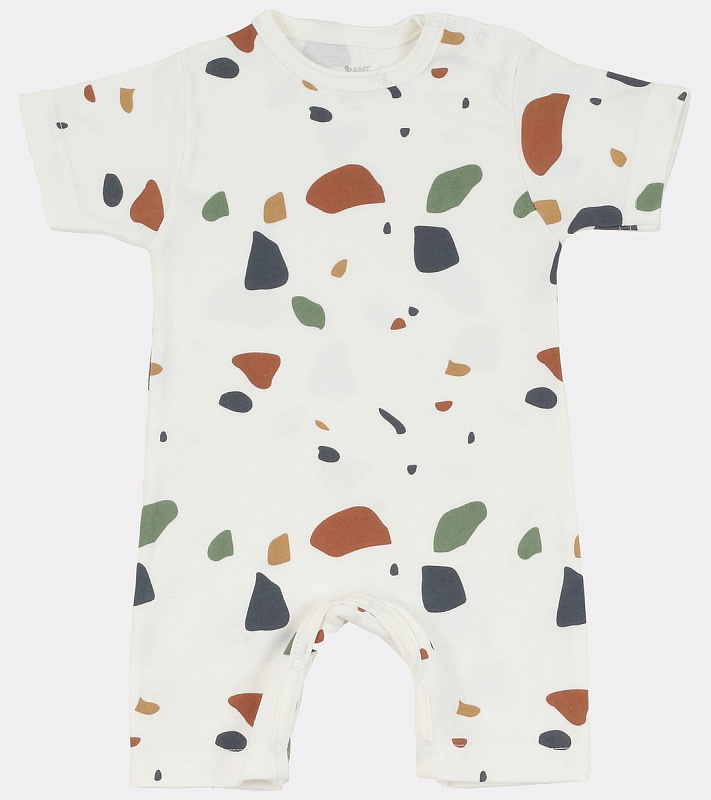 Эффектные ромперы обеспечат вашего малыша отличным настроением даже в знойный день! Кнопки на горловине позволят с комфортом переодевать ребенка, а кнопочки, расположенные в нижней части модели, обеспечат быстрый доступ к подгузнику.