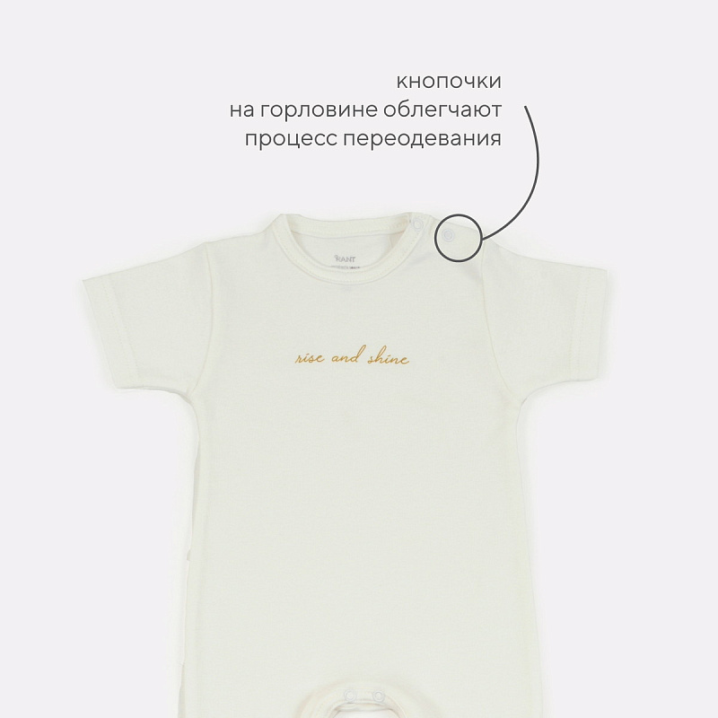 Эффектные ромперы обеспечат вашего малыша отличным настроением даже в знойный день! Кнопки на горловине позволят с комфортом переодевать ребенка, а кнопочки, расположенные в нижней части модели, обеспечат быстрый доступ к подгузнику.